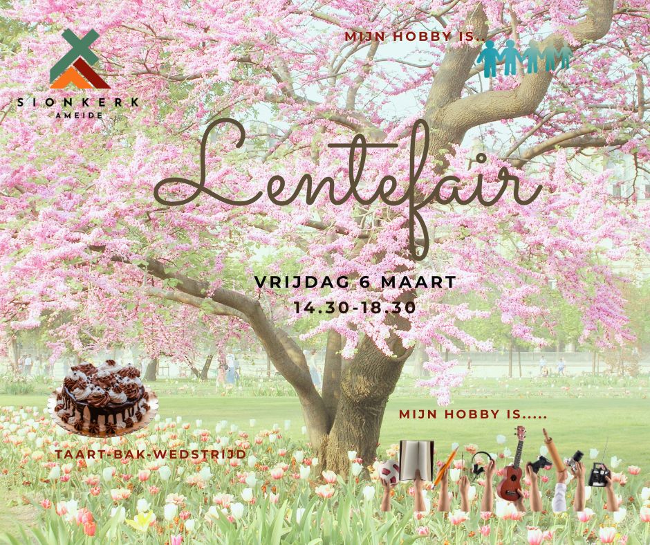 Het is nog geen lente, maar wij hebben er al zin in. Daarom organiseren we op 6 maart 2026, van 14.30 tot 18.30 uur, een gezellige Lentefair in de Sionkerk.